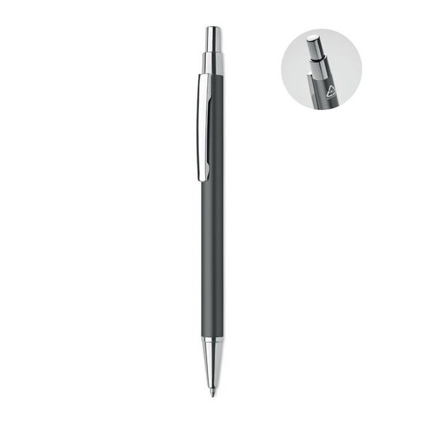 Kemijska olovka s gumbom od recikliranog aluminija. Plava tinta.