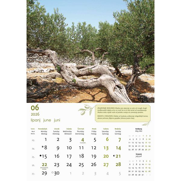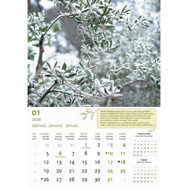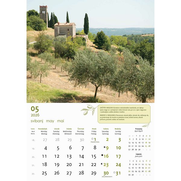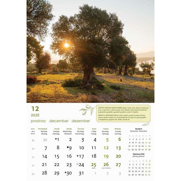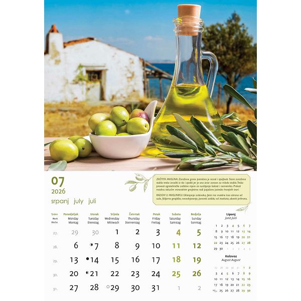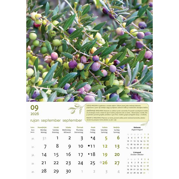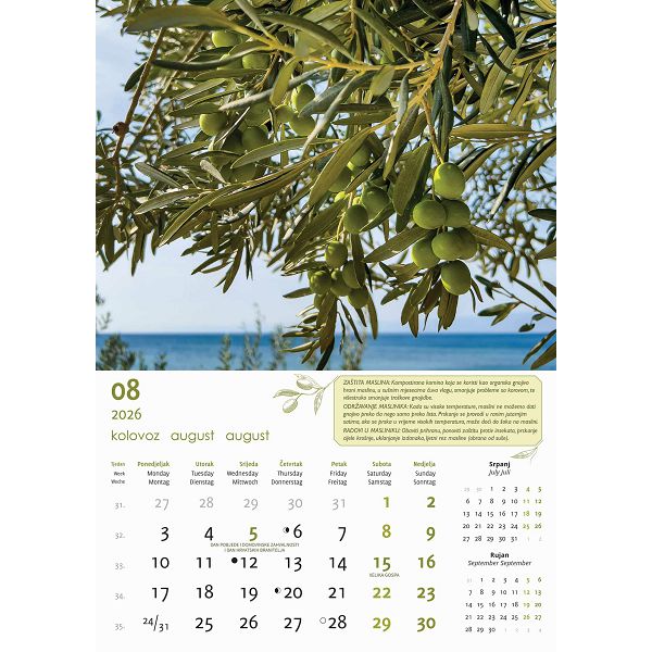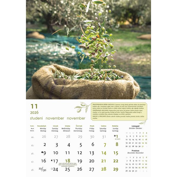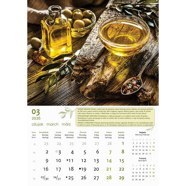 Zidni kalendar Masline – 13 listova, 30,5×50 cm