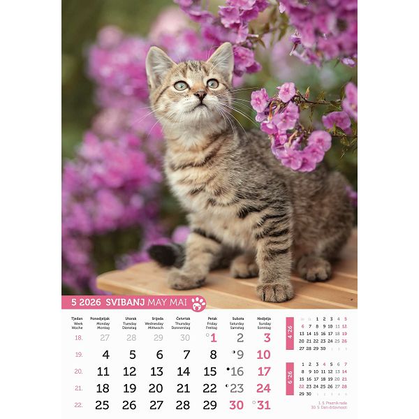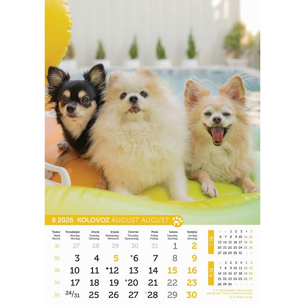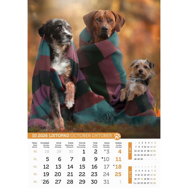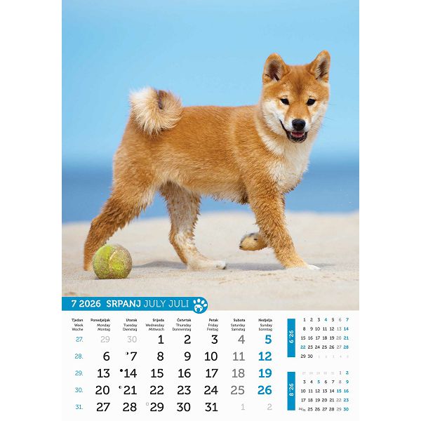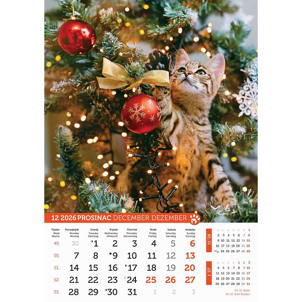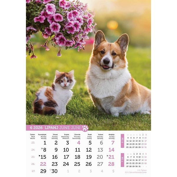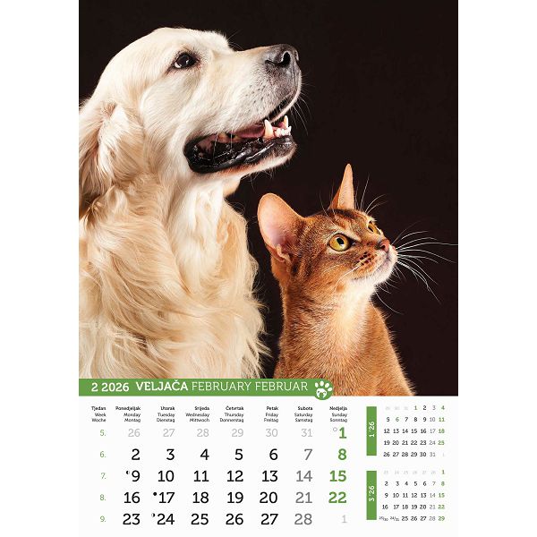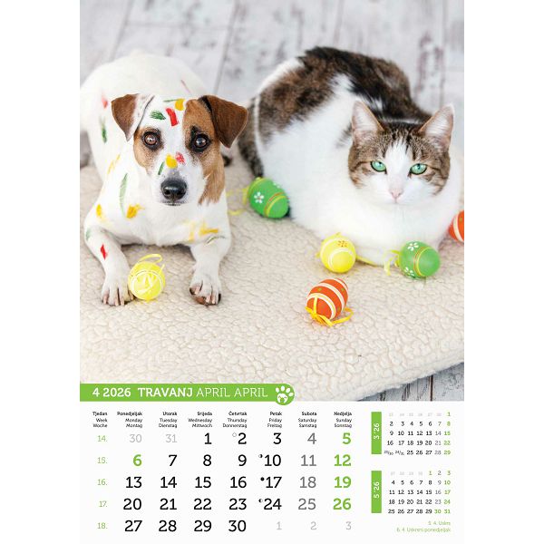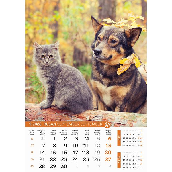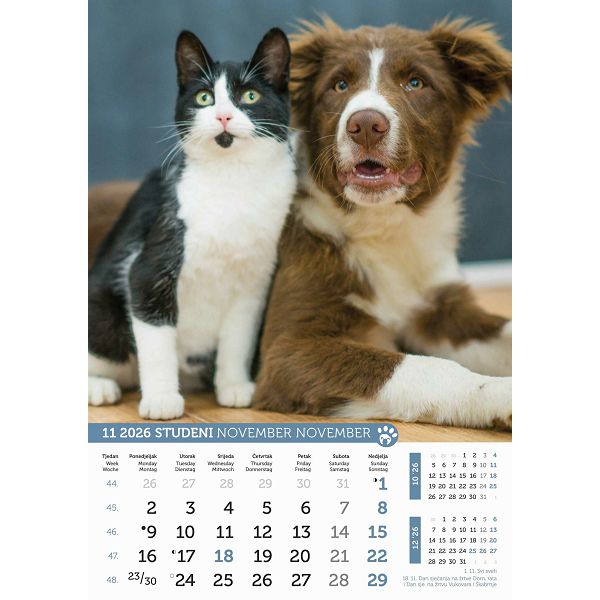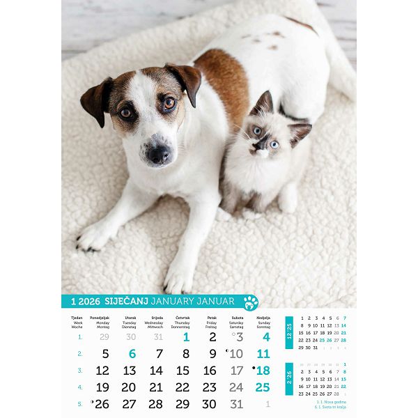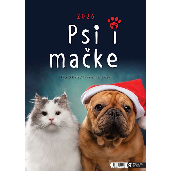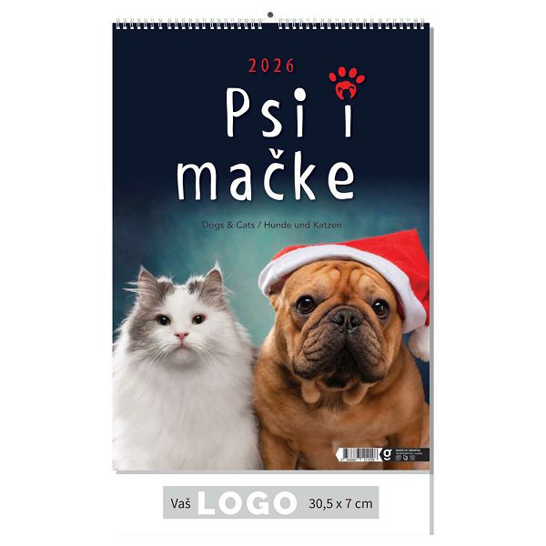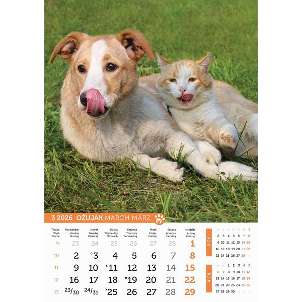 Zidni kalendar Psi i mačke – 13 listova, 30,5×50 cm