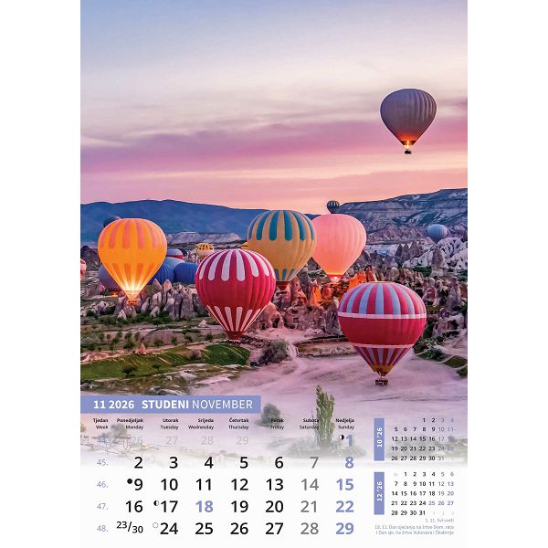 Zidni kalendar Svijet u boji – 13 listova, 30,5×50 cm
