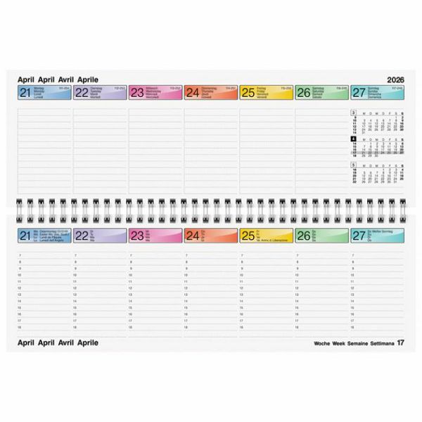 dimenzija: 297x105 cm; dvije stranice za jedan tjedan; 90 g/m2; 128 strana; tekst na: engleskom, njemackom, fransuskom i talijanskom
