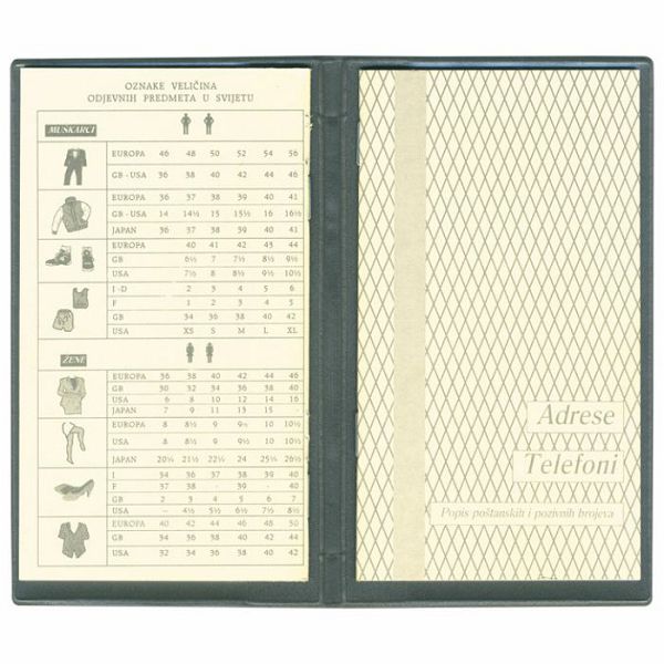 trodijelni; sadrži: terminski kalendar, blok i adresar
