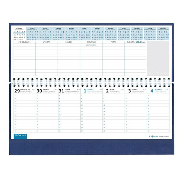 Opis proizvoda:128 strana \ndimenzija: ~ 30 x 14,5 cm \njezici: HR, GB, DE\nvrsta papira: 80 g/m2 listovi\ntisak: dvije boje (siva, plava) \nuvez: spiralni\npakiranje: 50 kom\npreporucena vrsta tiska: sitotisak, suhi žig, foliotisak, termotisak