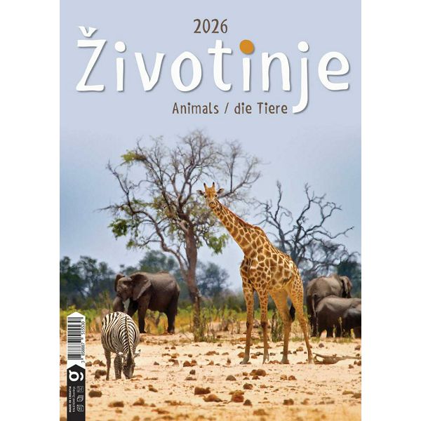 Zidni kalendar ŽIVOTINJE – 13 listova, 24x53,5 cm, color tisak