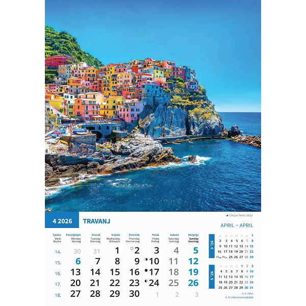 Zidni kalendar Biseri svijeta – 13 listova, 30,5×50 cm