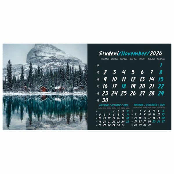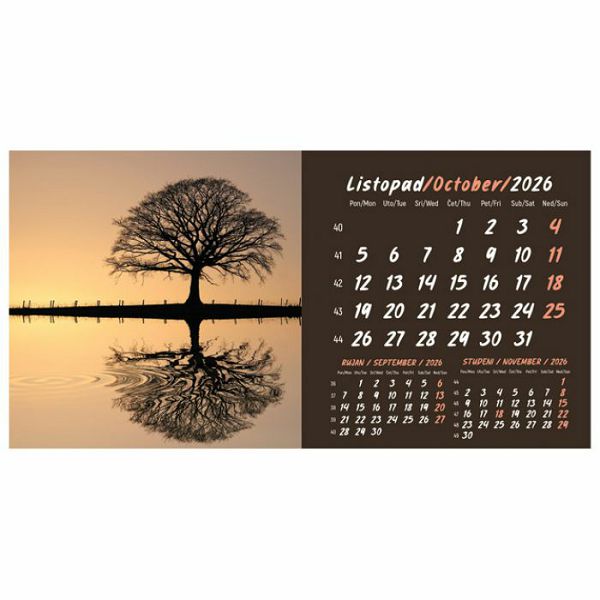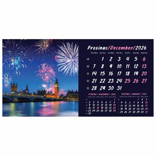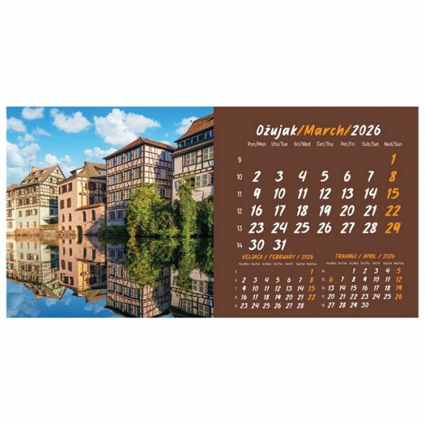 13 listova; dimenzija: 21x7 cm; pasica za dotisak 3 cm; spirala; s kuvertom